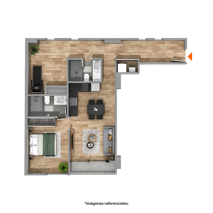 1 dormitorio + Estudio de 67.63m2 – S/3,029